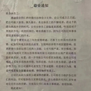通知内容显示,该公司亏损严重、举步维艰,而大股东深圳市艾利尔投资咨询有限公司的经济出现严重问题及股权被查封、处置,导致公司发生了资金链断、经营难以为继,现公司将采取全面歇业处理...