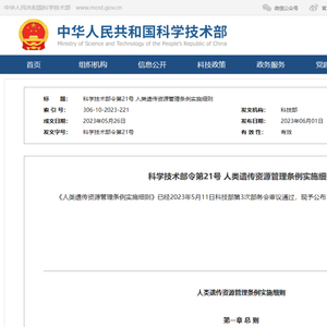 《人类遗传资源管理条例实施细则》已经2023年5月11日科技部第3次部务会审议通过,现予公布,自2023年7月1日起施行。