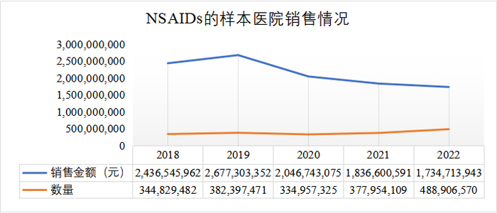 根据PDB销售数据,NSAIDs2019年样本医院销售额约26.77亿元,测算城市公立医院销售规模超100亿元,2020年销售额下降主要受疫情与集采落地的影响;从销售数量看,NSAIDs近5年呈稳步增长趋势。