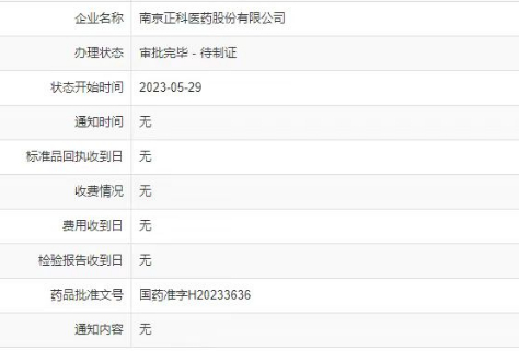 据NMPA官网信息显示,南京正科医药股份有限公司的右酮洛芬氨丁三醇注射液已于5月29日正式获得生产批件。