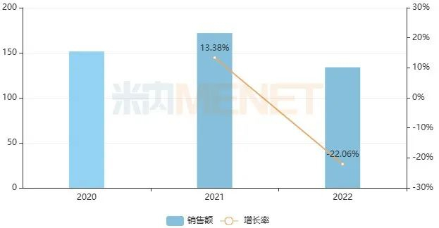 碘美普尔注射液由意大利博莱科研发,属于一种非离子型单体X射线造影剂,用于静脉尿路造影(成人,包括肾脏损害或糖尿病患者)、CT(躯干)、常规血管造影等。数据显示,2021年中国公立医疗机构终端碘美普尔注射液销售规模翻倍,2022年则再度增长21.85%,仅有博莱科1家在销售。