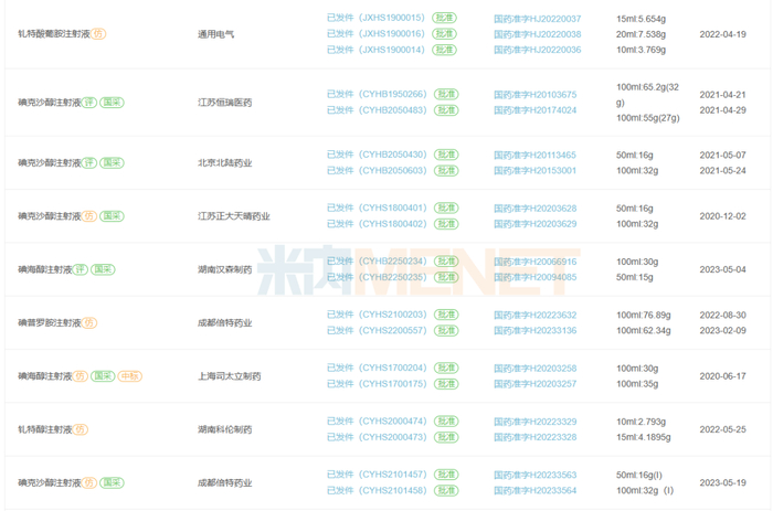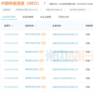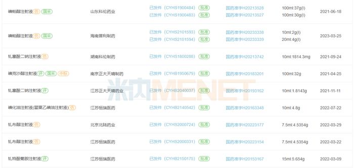 此外,八氟丙烷脂质微球注射液、氟[18F]化钠注射液、碘比醇注射液3个产品国内暂无仿制药获批,涉及湖南科伦制药、重庆圣华曦药业、原子高科3家企业。