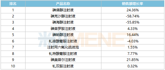 2个品牌增速亮眼,其中,恒瑞医药的碘佛醇注射液和博莱科的碘美普尔注射液增速均超过20%。