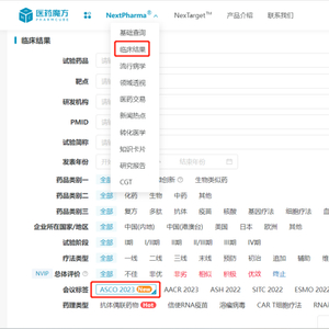 医药魔方NextPharma®一直在持续追踪全球热门会议的临床结果,对每年的AACR、ASCO、ASH、SITC、ESMO等会议会重点监测,并将会议中与创新药相关的临床结果收集整理入库,方便用户一键筛选重要会议公布的最新临床结果。