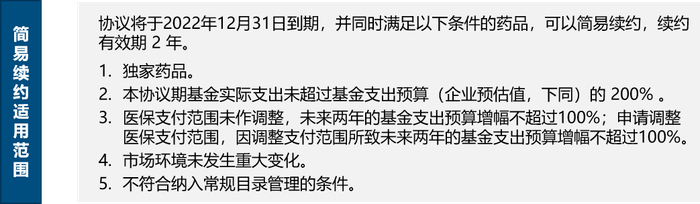 2022年6月29日,国家医疗保障局正式公布《2022年国家基本医疗保险、工伤保险和生育保险药品目录调整工作方案》,首次对目录内独家药品纳入医保目录采取简化准入路径,即“简易续约”规则。
