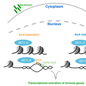 有趣的是,作者还证明DNA 6mA甲基转移酶METL-9可以通过与免疫反应相关转录因子DVE-1的相互作用部分实现对天然免疫反应的调控,表明METL-9参与天然免疫反应调控的机制是多层次的(图1)。