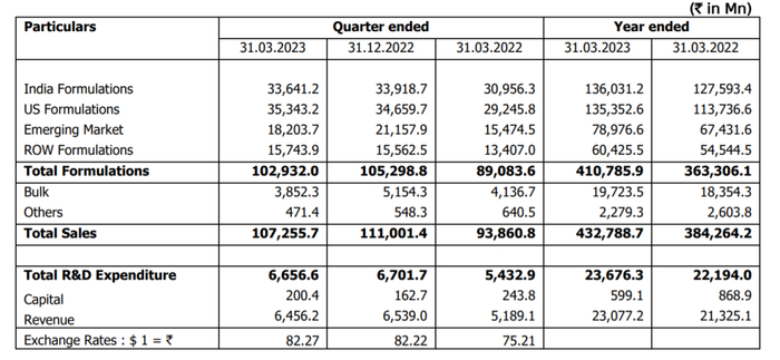 近日,印度仿制药巨头太阳制药(sun pharma)公布了2022-2023年业绩,全年总销售额达4327.89亿印度卢比(约合53.33亿美元),同比增长12.6%。净利润净利润847.36亿卢比(约合14.44亿美元),相比去年同期的327.27亿卢比,增长了158.92%,利润水平达19.58%,可谓是相当抢眼。