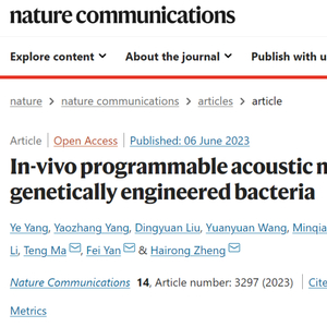 6月6日,中国科学院深圳先进技术研究院郑海荣研究员团队开发出一种相控阵全息声镊操控技术,在生物体及血流中成功实现了对含气囊细菌群的无创精准操控和高效富集,在动物模型中实现了肿瘤靶向治疗应用。相关成果发表于《自然》旗下期刊《自然—通讯》上。该研究中,深圳先进院为论文唯一通讯单位。