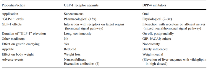 GLP-1R激动剂和DPP-4抑制剂的区别[1]