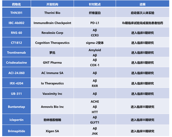 除了上述药物,其余AD新药小编整理如下: