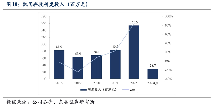 研发投入方面,2022年公司研发投入同比增长83.88%,主要用于在研项目KW-001的 III 期临床试验中受试者招募入组和用药随访和其它在研管线中,足可见公司发展自主研发的坚定决心。