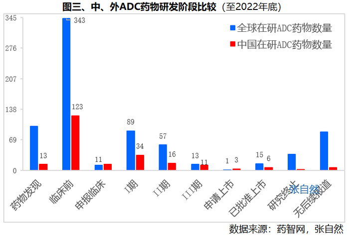 目前,全球有428种ADC药物正在研发中(Pharma projects数据),进入临床阶段的超过200个。其中,国内170余个ADC在研药物,进入临床阶段的近60个。