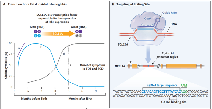 BCL11A是一种转录因子,可抑制红系细胞中的γ-珠蛋白和胎儿血红蛋白表达。因此,靶向抑制BCL11A在理论上可以重新激活γ-珠蛋白表达,从而治疗地中海贫血症和镰状细胞病。