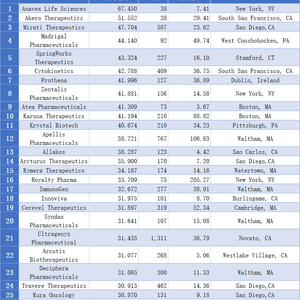 薪酬高的生物技术公司往往是小而美的公司,即拥有规模较小、高度专业化的团队。例如,在排名前10名的公司中,有3家(Anavex Life Sciences,Prothena和Karuna Therapeutics)是专门从事神经学研究的,有2家(Akero Therapeutics和Madrigal Pharmaceuticals)则专注于非酒精性脂肪性肝炎(NASH)。另外,在该报告中薪酬超过30万美元的27家公司中,有26家公司的员工人数不到1000人。