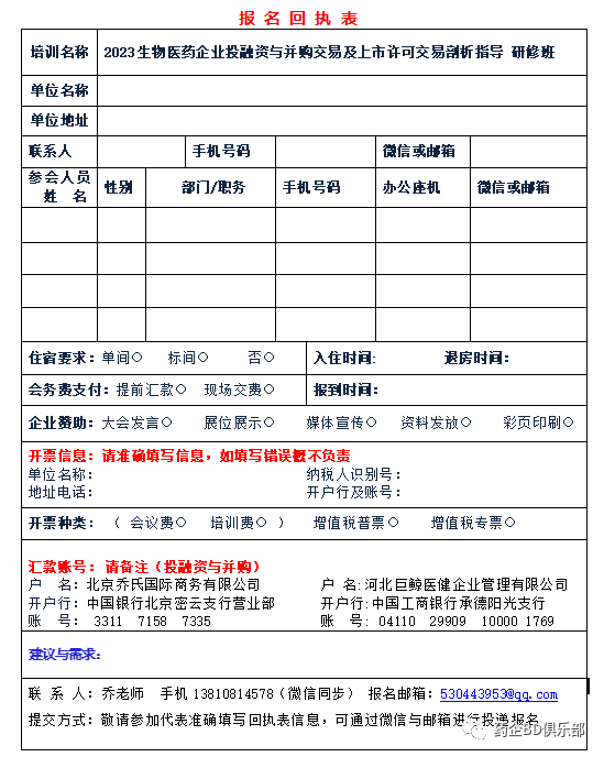 报名方式:请参加代表填写回执表信息,可通过微信或邮箱进行投递报名