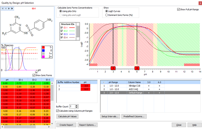 logD曲线是表征物质动态疏水性的参数,能够帮助进行pH值的优化选择和预估被分离物质在色谱柱上的保留。