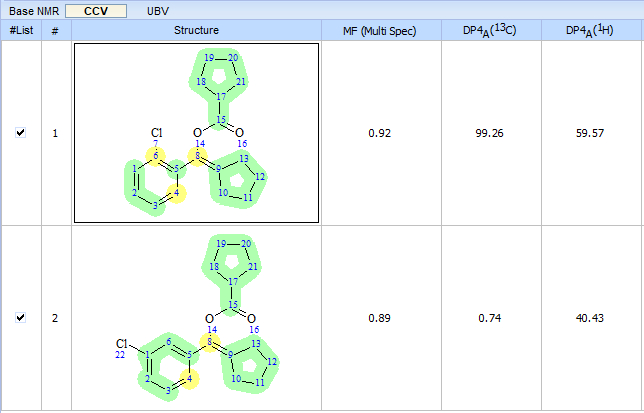 ACD/Labs的解析软件可实现一键多谱图与结构的快速验证。以Match Factor(MF)得分形式给出谱图与结构的吻合度,并对项目中所有谱图信号进行自动归属。对于可能的异构体的判定,同样可以根据最新的DP4评分进行评估。