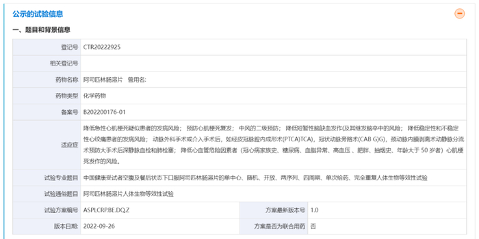 阿司匹林肠溶制剂开发难度较大,生产稳定性与生产工艺都具有一定的挑战性,药物临床试验登记与信息公示平台显示,南京道群医药已完成阿司匹林肠溶片人体生物等效性试验,试验入组人数为90人。