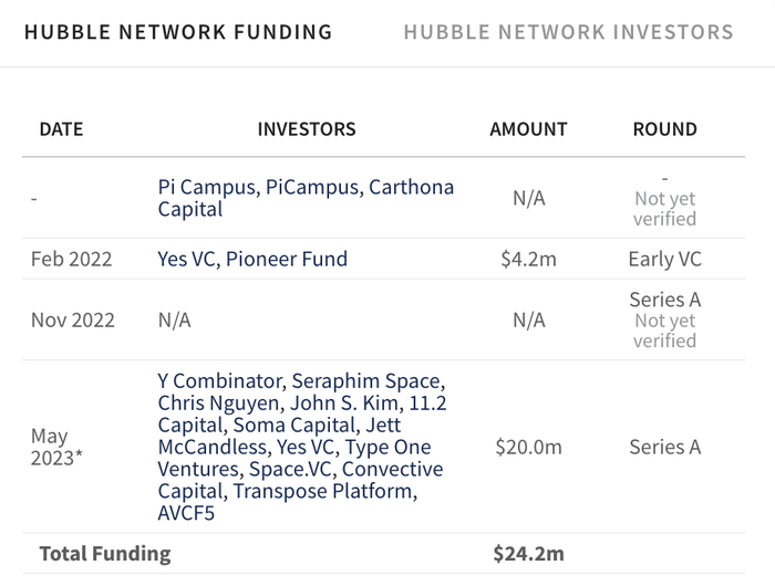 Hubble Network 几轮共获得超过 2400 万美元融资|网络