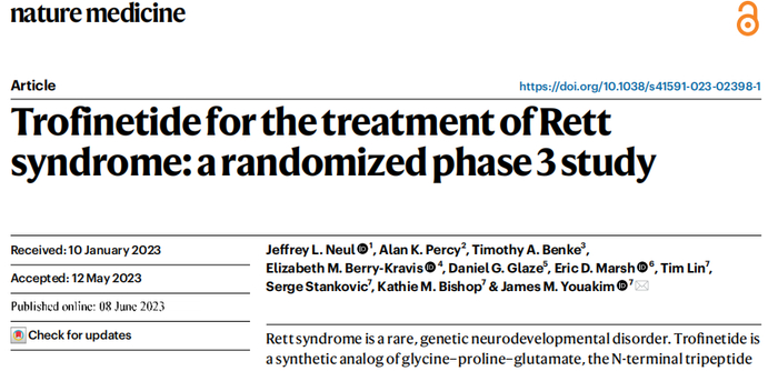 Trofinetide for the treatment of Rett syndrome:a randomized phase 3 study.nature medicine.