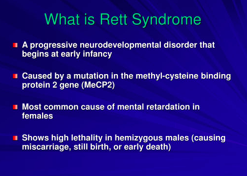 一般来说,雷特综合征是由基因突变(X染色体上的MECP2基因)引起的,患者一般出生6-18个月发病,多发于女孩和成年女性。