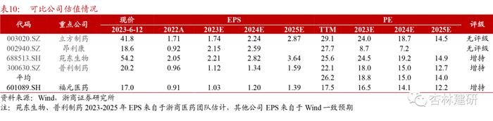 利润率方面:毛利率方面,考虑到集采产品对公司2023-2024年收入的影响,我们假设2023年药品毛利率有所下降,随着皮肤科等新产品上市,我们预计药品毛利率有所提升;此外我们假设器械的毛利率基本稳定、取2020-2022年毛利率平均值,在这样的假设下,我们预计2023-2025年公司综合毛利率先降后升、基本稳定。费用率方面,考虑到集采品种影响,我们假设销售费用率有所下降、研发费用率基本稳定,在这样的假设下,我们预计2023-2025年公司净利率有所提升。
