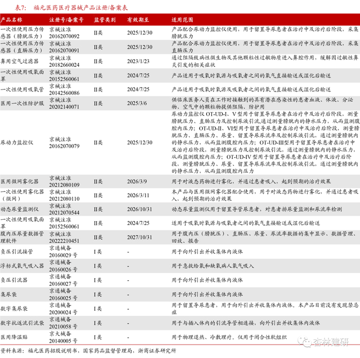 医疗器械应用前景逐渐扩大,发展可期。根据公司年报,2022年公司医疗器械产品收入1.98亿元,同比增长9.3%、收入占比6.1%。公司医疗器械产品以临床护理产品为主,家用医疗产品为辅。根据国家药品监督管理局,截至2023年5月,公司的医疗器械产品种类有19项,在研项目4个。从产品角度看,公司主要产品包括一次性使用吸氧管、鼻用空气净化器、尿动力监控仪等加湿吸氧装置,用于治疗低氧血症和有低氧血症风险的患者,我们认为,随着未来老龄人口占比提升,公司产品的应用前景将逐渐扩大,市场容量增长带动公司收入和利润增长