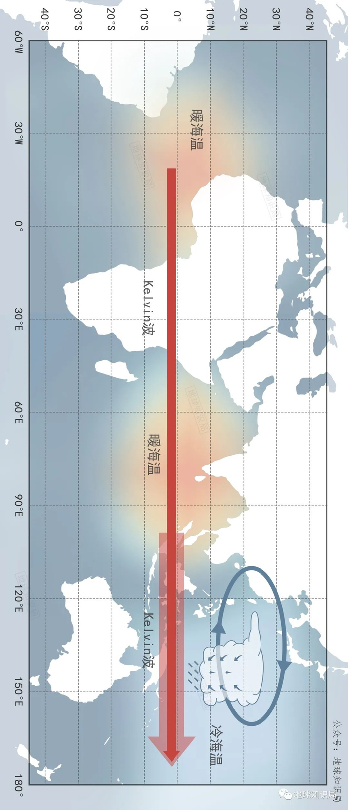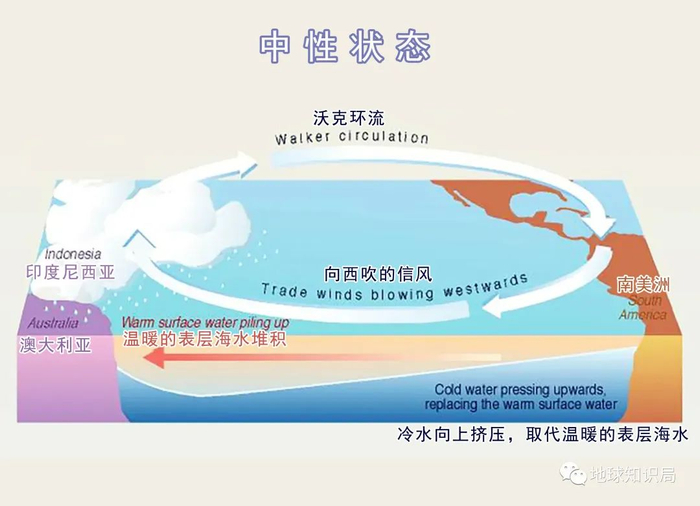 这种冷暖局面导致西太平洋大气上升,东太平洋大气下沉,组成了一个海洋-大气相互作用的环流圈