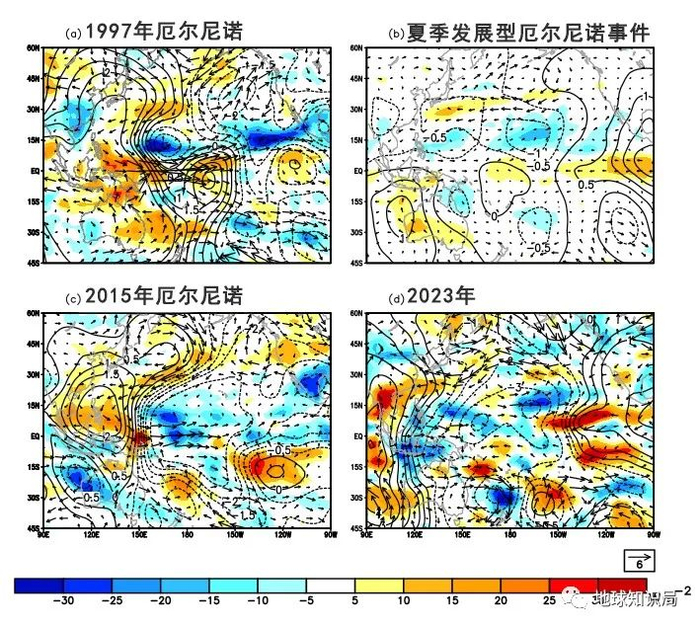 (a)1997、(b) 夏季发展型厄尔尼诺事件、