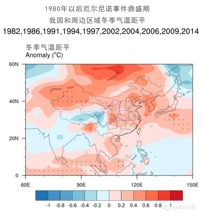 厄尔尼诺事件鼎盛期冬季的气温距平