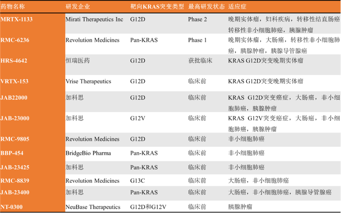考虑到KRAS不止G12C突变,临床前也在开发针对KRAS G12D,G12V以及泛KRAS抑制剂等。