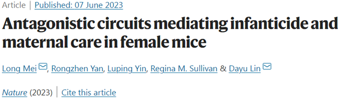 Long Mei et al. Antagonistic circuits mediating infanticide and maternal care in female mice. Nature, 2023, doi:10.1038/s41586-023-06147-9.