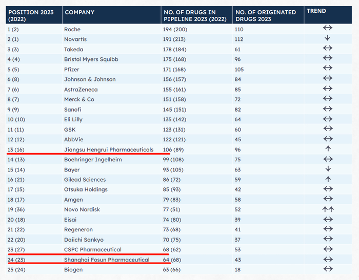 2023全球研发管线TOP25:中国恒瑞、石药、复星入围