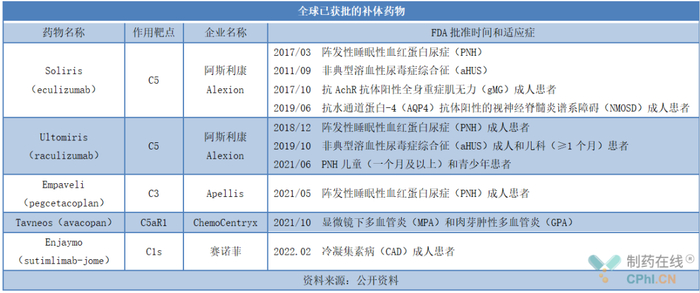 其中,补体类药物研发热潮最为高涨,如全球首款C5补体抑制剂Soliris,成为Soliris成为全球最畅销的罕见病药物之一,2020年其销售额高达40.64亿美元,获批适应症包括非典型溶血尿毒症综合征(aHUS)、全身型重症肌无力、视神经脊髓炎谱系障碍等。