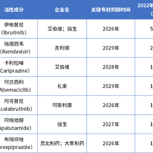 小分子化药作为临床上最常用的药物类型,其专利期结束后的影响范围也最为广泛。未来5年约有130个小分子化药核心专利到期,本文梳理了其中7个全球销售百亿元级别的重磅药物,以供企业研发立项参考。