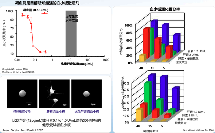 相较于肝素,比伐芦定发挥作用时因为不需要与抗凝血酶Ⅲ结合,不引起血小板Ⅳ因子的抵抗。以冠心病抗凝为例,肝素使用会影响患者的正常凝血功能,除了会导致出血外,还会导致血小板减少等严重问题,但比伐芦定不会带来这些隐患。