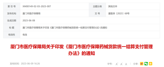 近日,福建厦门市医保局发布《厦门市医疗保障药械货款统一结算支付管理办法》(以下简称《办法》)。