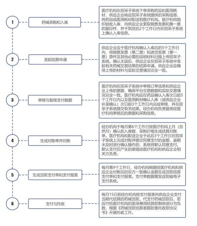 代付的结算款从每月应付给医疗机构的医保费用结算款中扣除,应付医保费用结算款不足以抵扣已代付药械货款的,不足部分向医疗机构收回。