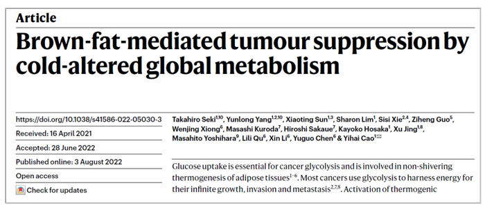 Nature|棕色脂肪组织在低温下对营养物质的竞争力竟比肿瘤组织强