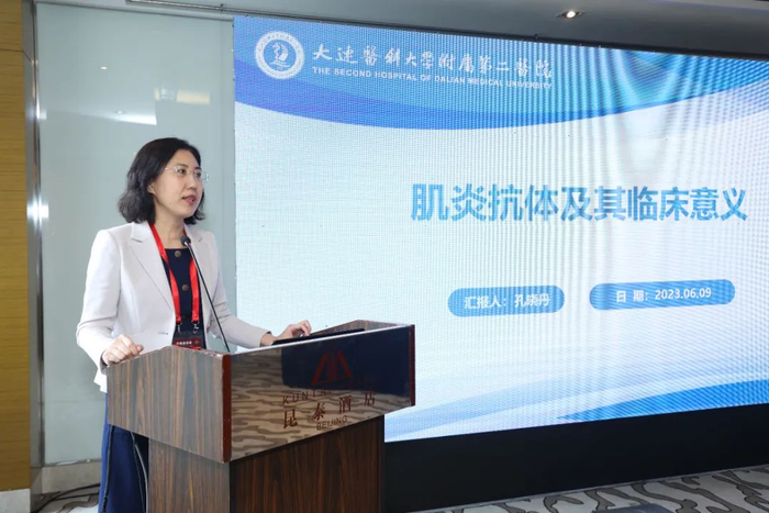 在第一届协和-华西自免论坛会议中,有来自全国各地的多位风湿领域内知名专家教授,进行了精彩的专题学术报告,分别从自身抗体检测的多种项目、各个方面进行了系统介绍。其中大连医科大学附属第二医院风湿免疫科孔晓丹主任分享了肌炎相关自身抗体的检测及临床应用提到:临床对于肌炎特异性抗体的需求非常大,间质性肺病患者,使用他汀类降脂药物治疗的患者,其它自免肌病患者都可以进行检测。