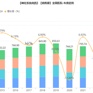 据药融云统计,中国神经系统用药院内市场销售额峰值超850亿元,近两年有所下滑,2022年院内销售额为767亿元,为整体医药市场热门领域。