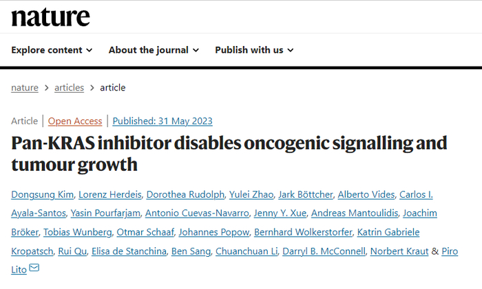 [1] Kim, D., Herdeis, L., Rudolph, D. et al. Pan-KRAS inhibitor disables oncogenic signalling and tumour growth. Nature (2023). https://doi.org/10.1038/s41586-023-06123-3