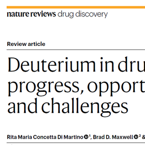 在日新月异的药物研发领域,科学家们不断寻求创新方法来提高药物分子的疗效和安全性。近几年,其中一种受到广泛关注的策略是将氘(一种氢的重同位素,两者仅差1个中子)引入药物分子中。氘代,即用氘原子替代氢原子的过程,会引起化合物的结构和性质变化,从而优化药物分子的药代动力学并降低毒性。氘代反应在提升药物治疗效果和安全性上展现了巨大潜力,近日《自然》杂志子刊Nature Reviews Drug Discovery发表了一篇综述,详细总结了氘代反应在药物发现领域的发展历程、潜在机遇及所面临的挑战。