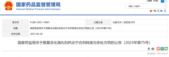 6月20日,国家药监局发布了银黄含化滴丸、热炎宁合剂由处方药转换为非处方药通知,要求MAH在2024年3月14日前,向省级药品监督管理部门提交修订说明书备案,药品上市许可持有人提交备案之日起生产的药品,不得继续使用原药品说明书。