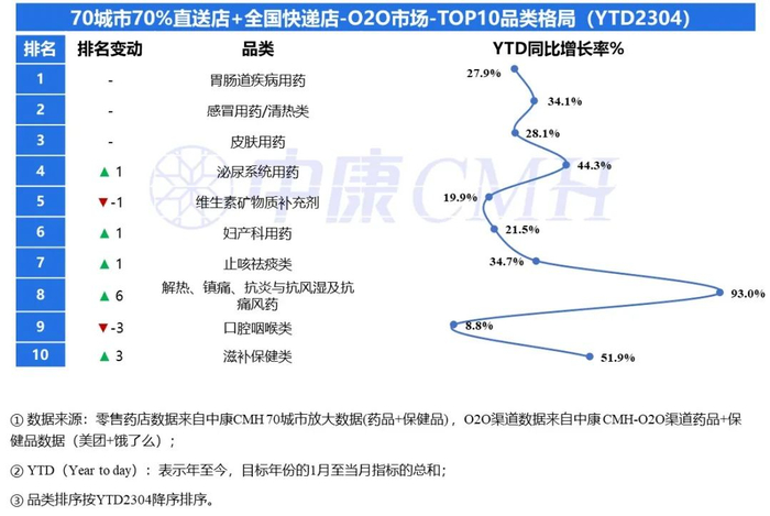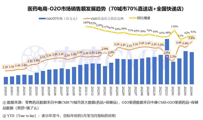 今年4月药品保健品销售回缓,但头部城市头部门店的O2O市场规模在零售药店的占比再创新高,达3.8%。O2O快递店市场规模以48%的增速迅速扩容,直送店市场规模以27%的增速持续扩大。