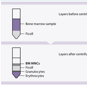 2.用缓冲液以7:1的比例稀释抽吸的人骨髓,例:用5mL缓冲液稀释30mL的骨髓,最终体积为35mL。