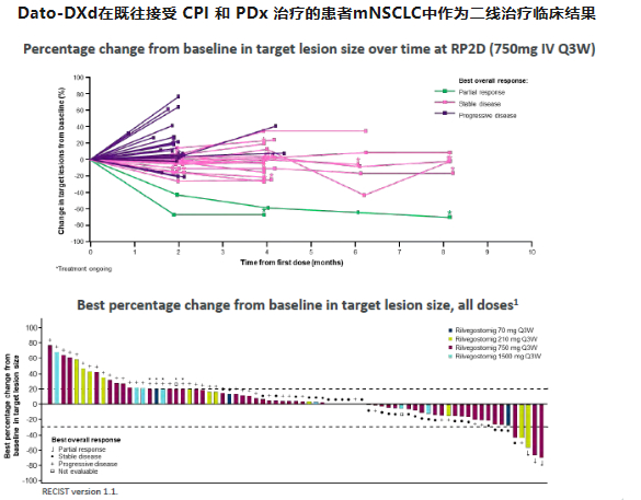 Dato-DXd在既往接受 CPI 和 PDx 治疗的患者mNSCLC中作为二线治疗也显示令人鼓舞的初步抗肿瘤的活性,在剂量递增期间未观察DLT(ARTEMIDE-01)。
