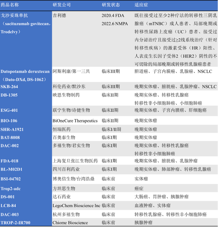 部分在研的靶向Trop-2 ADC产品