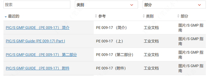 PIC/S最新的GMP指南PE 009-17由以下4个文件组成: