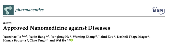 纳米技术和材料的发展给医学带来了一场深刻的革命,极大地影响了肿瘤、传染病和心血管疾病等各种重大疾病的治疗。纳米医学在过去几年中经历了爆炸性的增长。越来越多的药物已经采用纳米剂型来降低副作用,提高疗效。中国药科大学合作团队近期在Pharmaceutics上发表了题为《Approved Nanomedicine against Diseases》的综述,就已批准的纳米药物、其适应症以及常用的纳米载体和纳米技术的特性进行了概述。